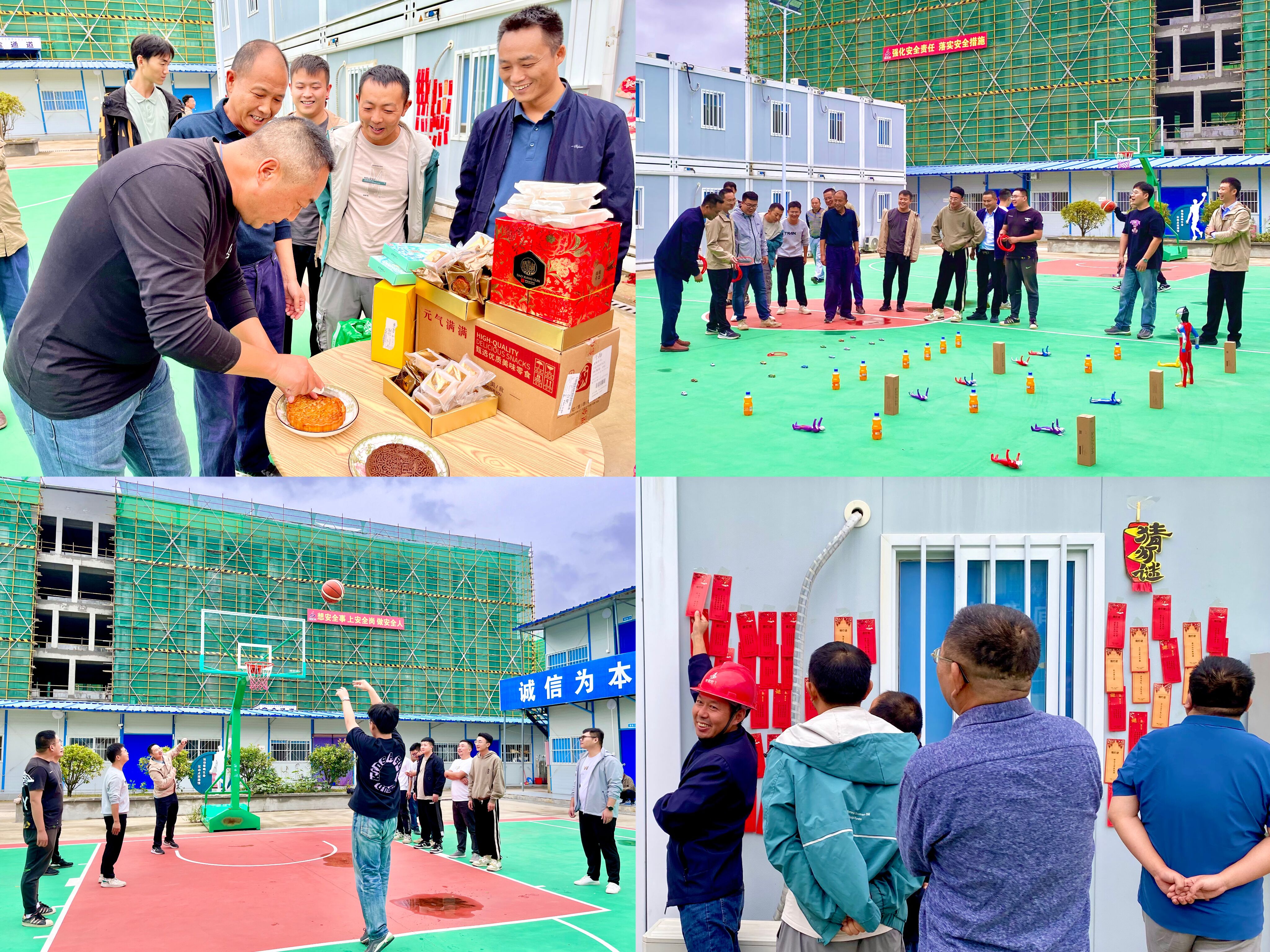 節(jié)前,分公司工會(huì)還前往岳西中學(xué)建設(shè)項(xiàng)目(一期)安裝專業(yè)分包工程項(xiàng)目部開(kāi)展了雙節(jié)慶祝活動(dòng)。在項(xiàng)目現(xiàn)場(chǎng),大家共同分享團(tuán)圓大月餅,一起品嘗節(jié)日“美味”,組織開(kāi)展猜燈謎、趣味套圈、定點(diǎn)投籃等游戲活動(dòng),設(shè)置“投籃最佳射手”等獎(jiǎng)項(xiàng)。項(xiàng)目部人員熱情踴躍參加,場(chǎng)面熱鬧非凡,爽朗的笑聲回蕩在整個(gè)項(xiàng)目現(xiàn)場(chǎng),在工作之余愉悅身心,緩解工作壓力,同時(shí)也增進(jìn)大家之間的溝通交流,進(jìn)一步增強(qiáng)團(tuán)隊(duì)合作精神和企業(yè)凝聚力、向心力。