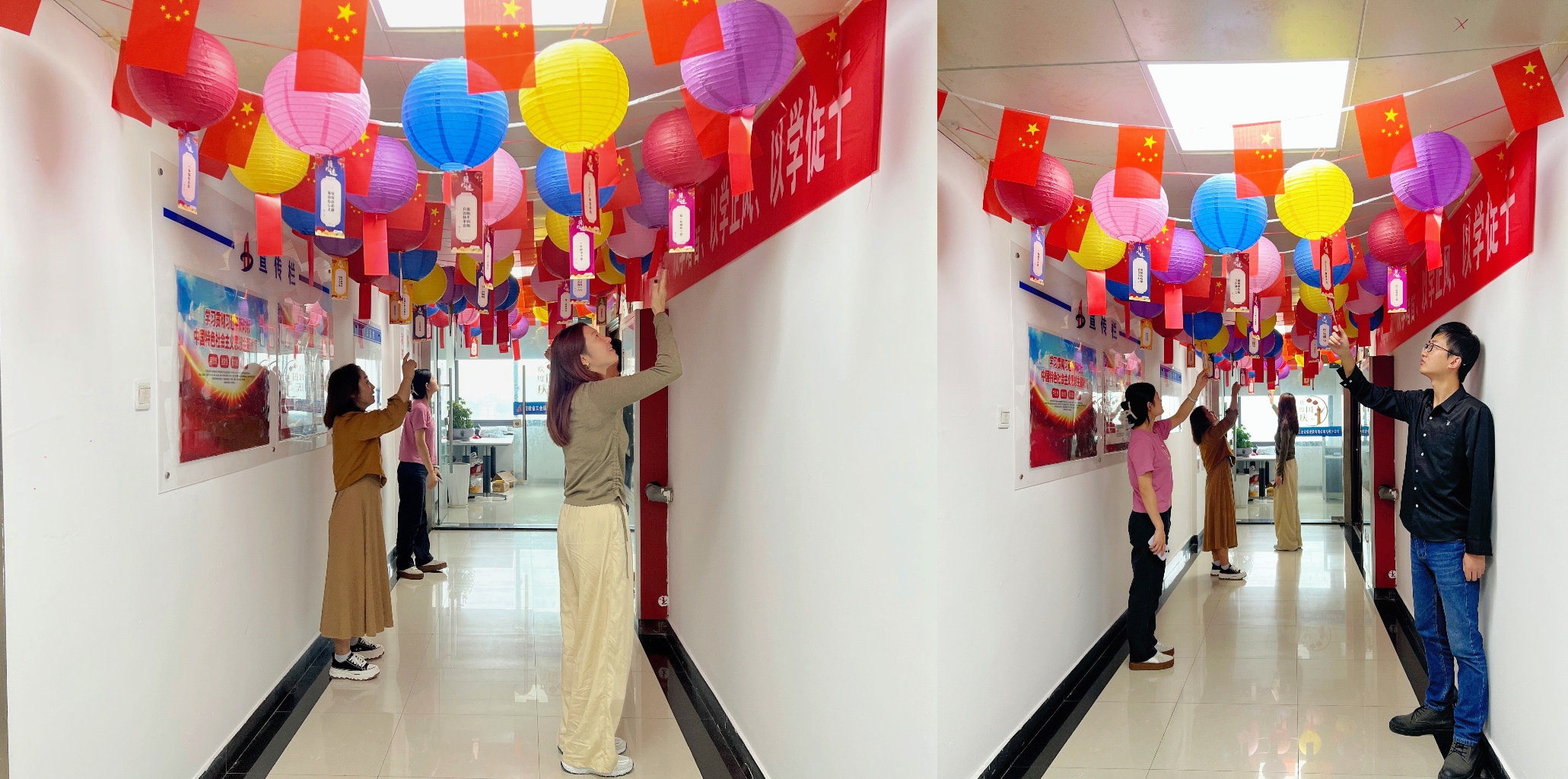 活動期間,分公司購置了各類節(jié)日裝飾品,對分公司工作環(huán)境進行了精心裝扮,鮮紅的國旗和多彩的燈籠營造了濃厚的節(jié)日氛圍?;顒舆^程中,分公司員工盡情分享工作中的感想與收獲,品嘗擺放的石榴等水果以及各式月餅,積極踴躍參加猜燈謎、投壺游戲等活動。在制作燈籠環(huán)節(jié),員工們全神貫注,仔細認真地搭接燈籠的每一個構件,看著承載著團圓的傳統(tǒng)藝術品在手中慢慢成形,大家歡聲笑語、頗有成就。