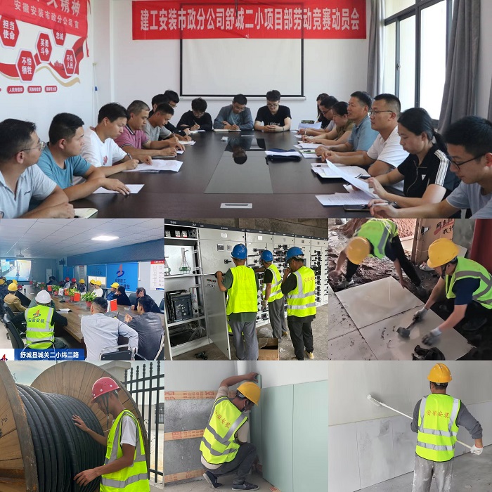 七月驕陽似火,工程也進入了最后決戰(zhàn)的關(guān)鍵時刻。為奏響夏日大干“進行曲”,吹響建設(shè)攻堅“沖鋒號”,舒城二小項目部圍繞外強電專業(yè)分包工程適時開展了“當(dāng)好主人翁 建功大發(fā)展”大干20天主題勞動競賽活動。為確保按時完成競賽目標(biāo)任務(wù),項目部參建人員統(tǒng)一思想認(rèn)識,堅定信心、攻堅克難、日夜奮戰(zhàn),抓細(xì)抓實施工過程管控,按照競賽方案設(shè)立的節(jié)點目標(biāo),細(xì)化工作任務(wù),保證人、財、物等各項資源配置,在保證工程安全質(zhì)量的前提下,爭分奪秒地加快項目建設(shè)進度。當(dāng)施工進入炎炎烈日當(dāng)空、高溫酷暑難耐的盛夏時節(jié),為確保施工不間斷,項目部管理人員和一線工人始終堅守工作崗位、不下火線,他們緊盯各工序時間節(jié)點和目標(biāo)任務(wù),延長早間、夜間作業(yè)時間,按進度找差距、補短板,確保各項節(jié)點目標(biāo)按時按質(zhì)完成;同時項目部做好現(xiàn)場防暑降溫各項措施,為一線員工們送去夏日“清涼”和加班生活物資,確保安全施工不松懈、后勤生活有保障。在勞動競賽過程中,項目部科學(xué)組織、合理分工、搶抓進度,全體干部職工勇于擔(dān)當(dāng)作為,大干快上,創(chuàng)造了一個又一個“不可能”,7月20日前完成全部電纜敷設(shè),7月30日前完成環(huán)網(wǎng)柜安裝和電力系統(tǒng)調(diào)試,如期為項目送上了電,圓滿完成了競賽目標(biāo)。
