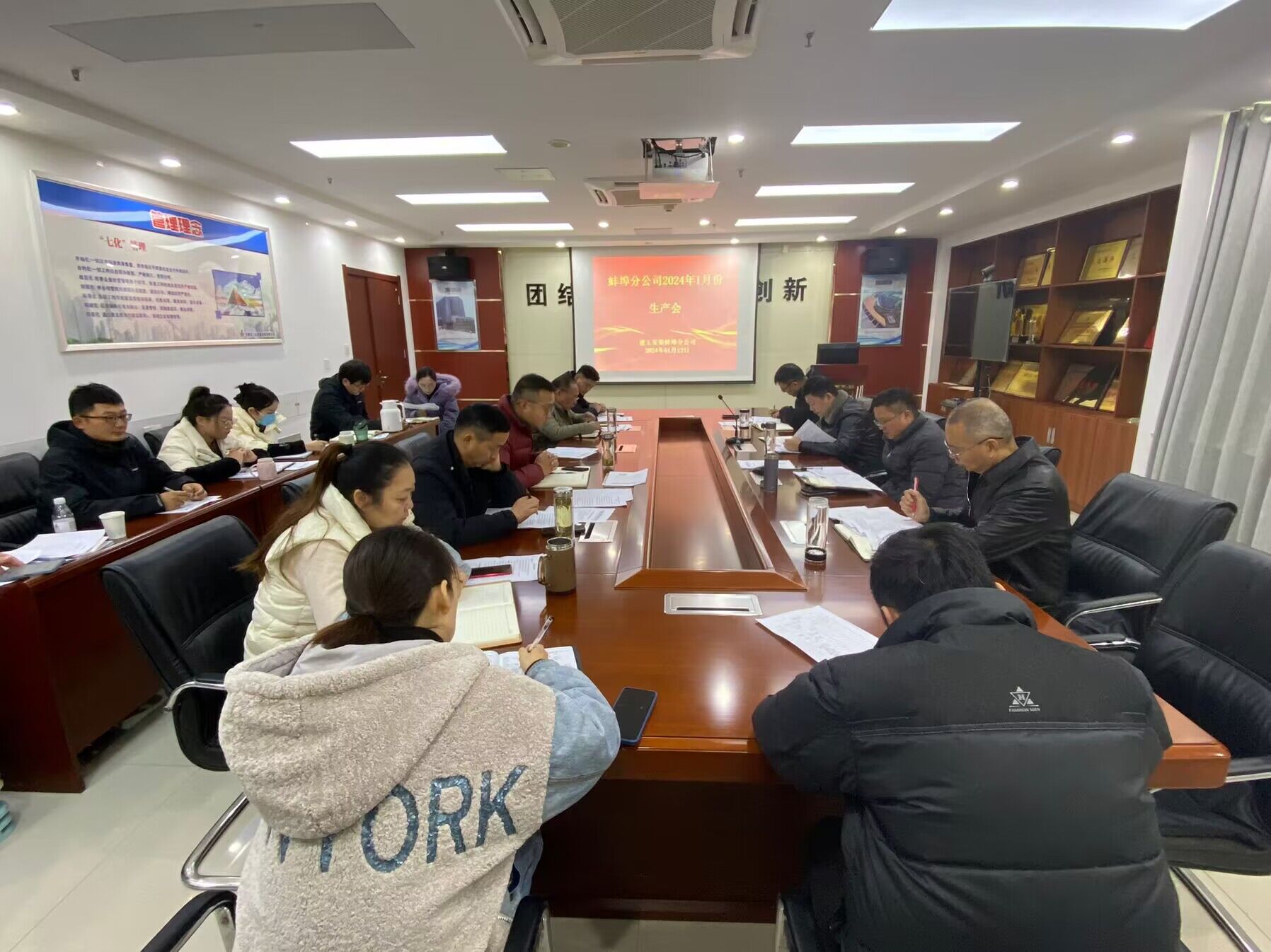 1月12日上午,蚌埠分公司組織召開1月份生產會,分公司領導班子、所屬各項目經理、機關各部門負責人及工程管理部全體員工參加會議,會議由副經理張斌主持。