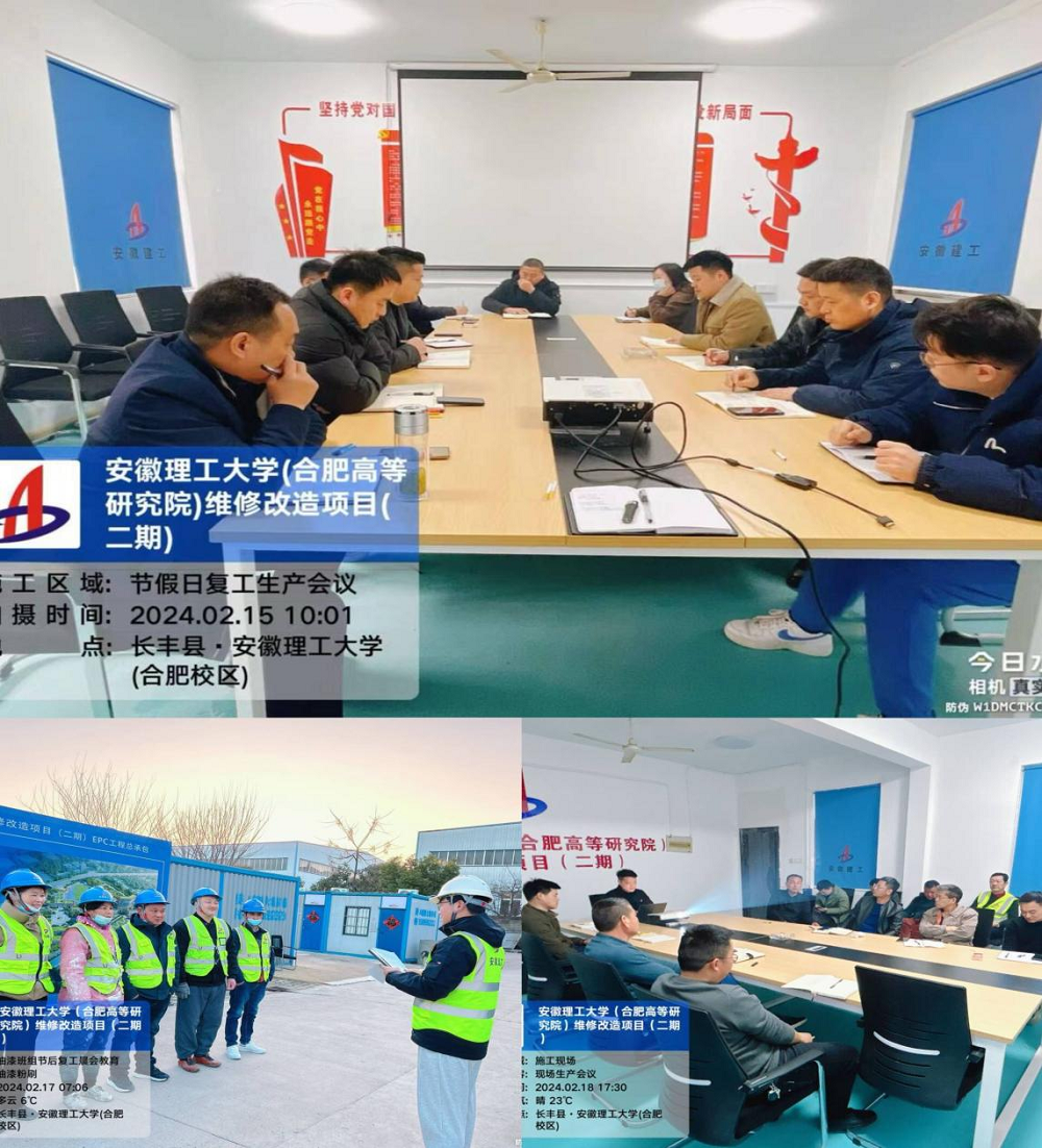 一年四季春為首,不負(fù)春日復(fù)工忙。建工安裝安徽理工大學(xué)維修改造項(xiàng)目(二期)工程自正月初六起正式進(jìn)入緊張忙碌的復(fù)工狀態(tài)。項(xiàng)目一線職工迅速?gòu)摹肮?jié)日模式”切換成“工作模式”,收心歸位、大干快上,只見(jiàn)施工現(xiàn)場(chǎng)處處一片繁忙的景象,建設(shè)者們正在以信心百倍、干勁十足的狀態(tài),積極投入到新的一年工作中,全力沖刺一季度“開門紅”。