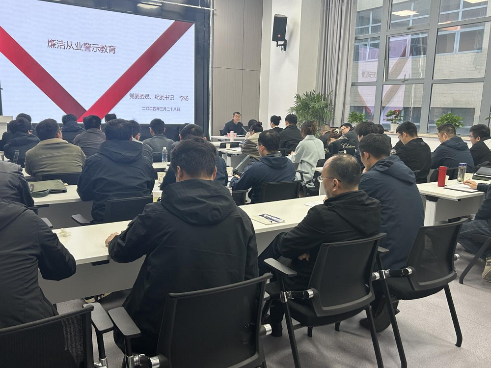 為進一步增強項目經(jīng)理廉潔從業(yè)意識,教育和引導項目經(jīng)理正確行使手中的權力,3月28日下午,建工安裝紀委在公司項目經(jīng)理年度培訓會議上對項目經(jīng)理開展了廉潔從業(yè)集體談話。公司紀委書記李楊作了講話,項目經(jīng)理、核算員80人參加。