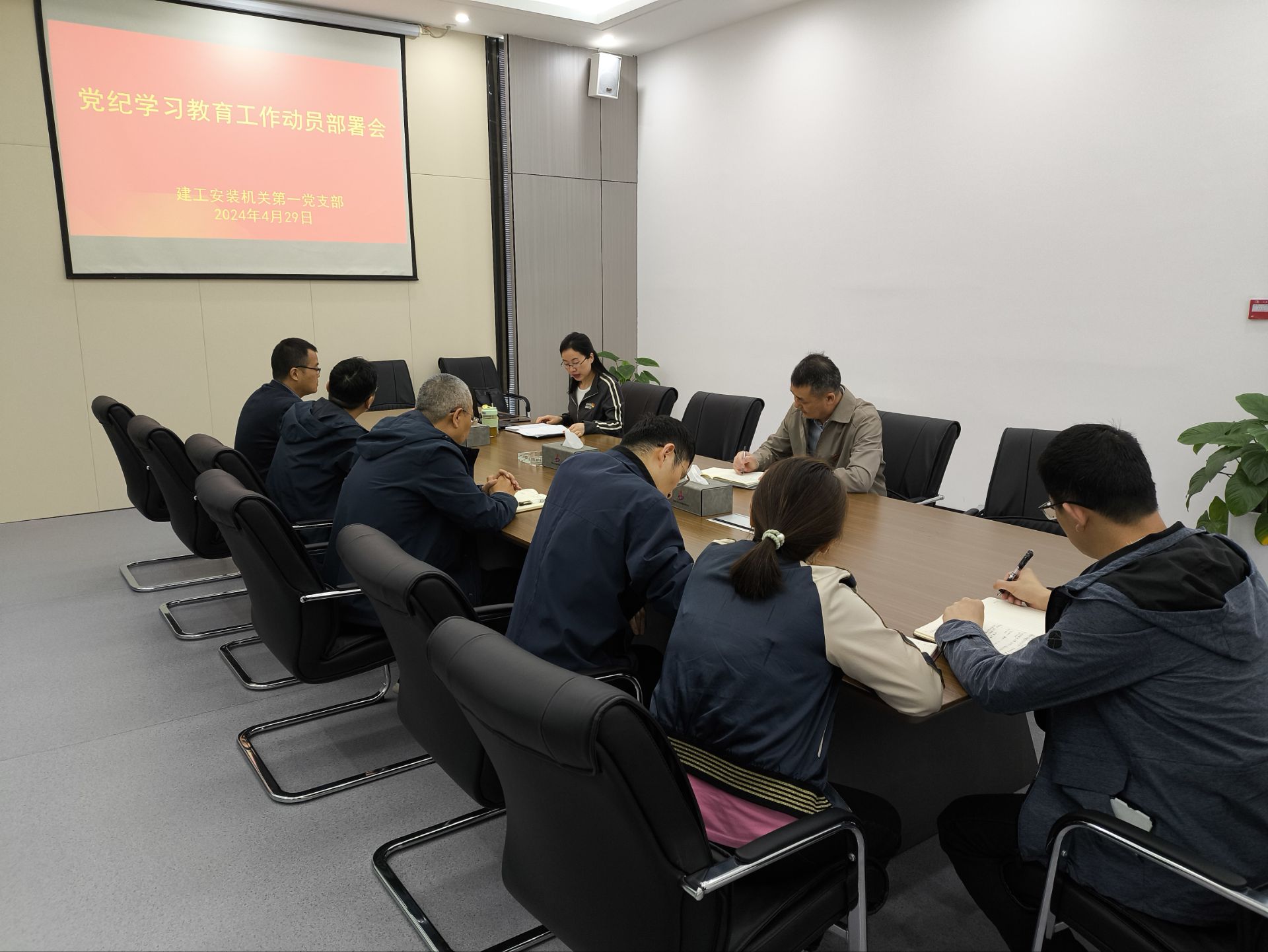 4月29日上午,機關第一黨支部召開黨紀學習教育工作動員部署會,公司黨委委員、紀委書記李楊以普通黨員身份參加了會議,會議由黨支部書記余群主持。