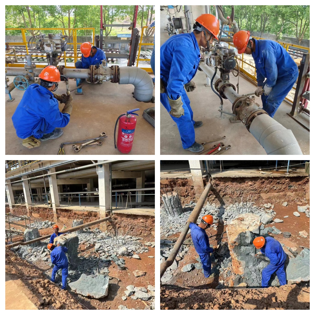 圖為現(xiàn)場(chǎng)管道拆除和挖孔樁施工