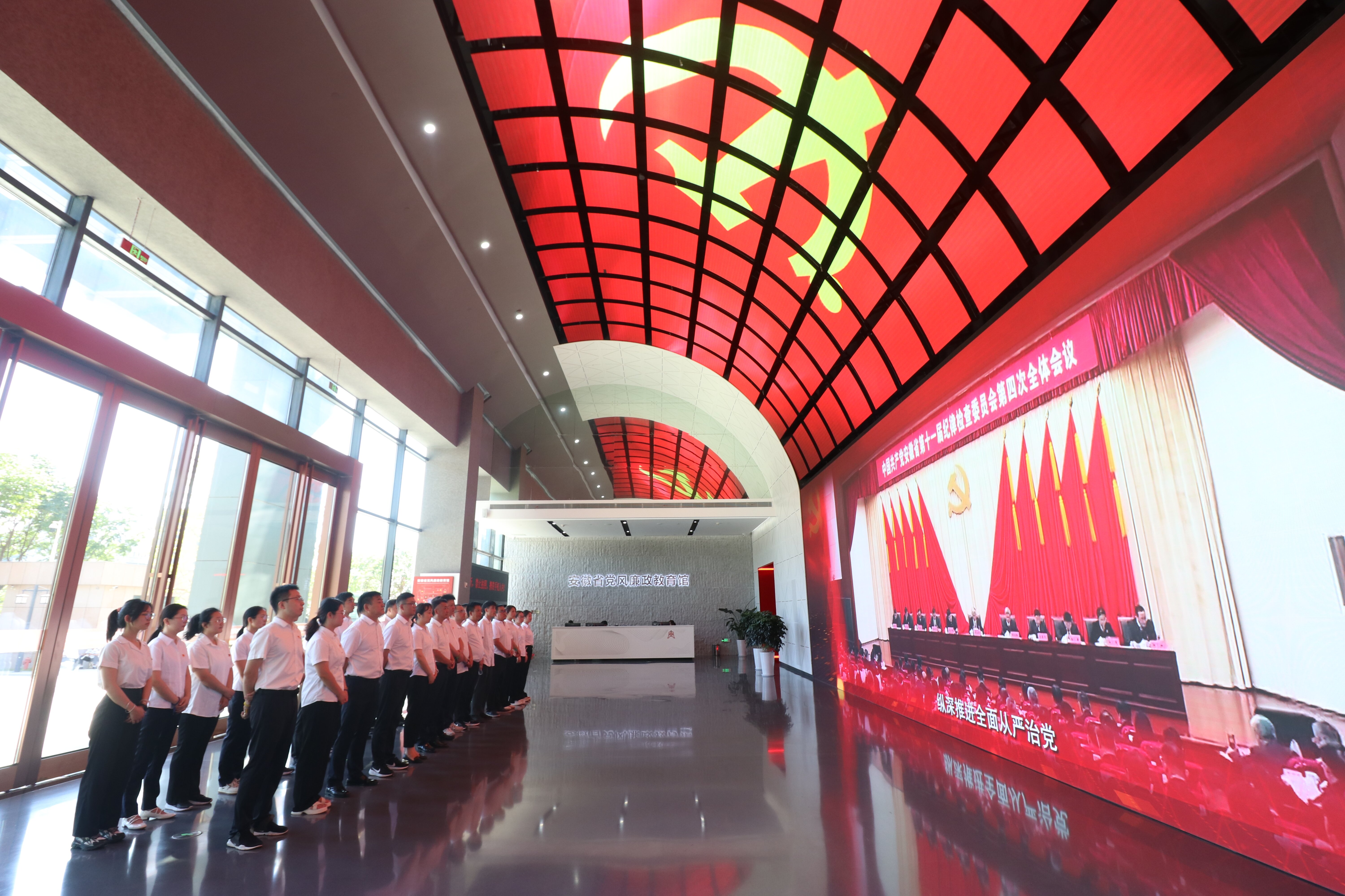 進(jìn)入教育館,全體人員集中觀看了《永遠(yuǎn)在路上》專題片。隨后,依次參觀了“紀(jì)律立黨·從嚴(yán)治黨”“廉潤(rùn)江淮·清風(fēng)揚(yáng)帆”“以案為鑒·警鐘長(zhǎng)鳴”“不忘初心·永葆清廉”四個(gè)展廳。跟隨著講解員的步伐,通過聆聽講解、觀看視頻圖片、場(chǎng)景還原、體驗(yàn)空間等形式,全方位學(xué)習(xí)回顧了建黨百年來的紀(jì)律建設(shè)史,以及安徽省委落實(shí)全面從嚴(yán)治黨、深入開展黨風(fēng)廉政建設(shè)和反腐敗斗爭(zhēng)的豐碩成果。一組組觸目驚心的數(shù)字、一幕幕聲淚俱下的懺悔、一段段發(fā)人深省的旁白,令參觀的黨員干部職工受警醒、明底線、知敬畏。參觀結(jié)束后,全體黨員面向黨旗,舉起右手,莊嚴(yán)宣誓,重溫入黨時(shí)的承諾,在鏗鏘有力的宣誓聲中回望初心使命。本次活動(dòng)大家還集中觀看了30分鐘警示教育片。