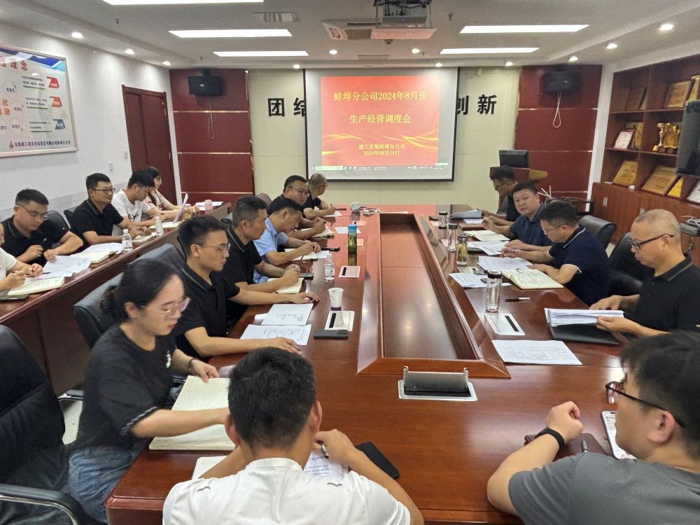 8月14日上午,蚌埠分公司組織召開8月份生產(chǎn)經(jīng)營調(diào)度會,分公司領(lǐng)導(dǎo)班子成員、所屬各項(xiàng)目部、機(jī)關(guān)各部門負(fù)責(zé)人及工程管理部全體員工參加會議,會議由分公司副經(jīng)理張斌主持。