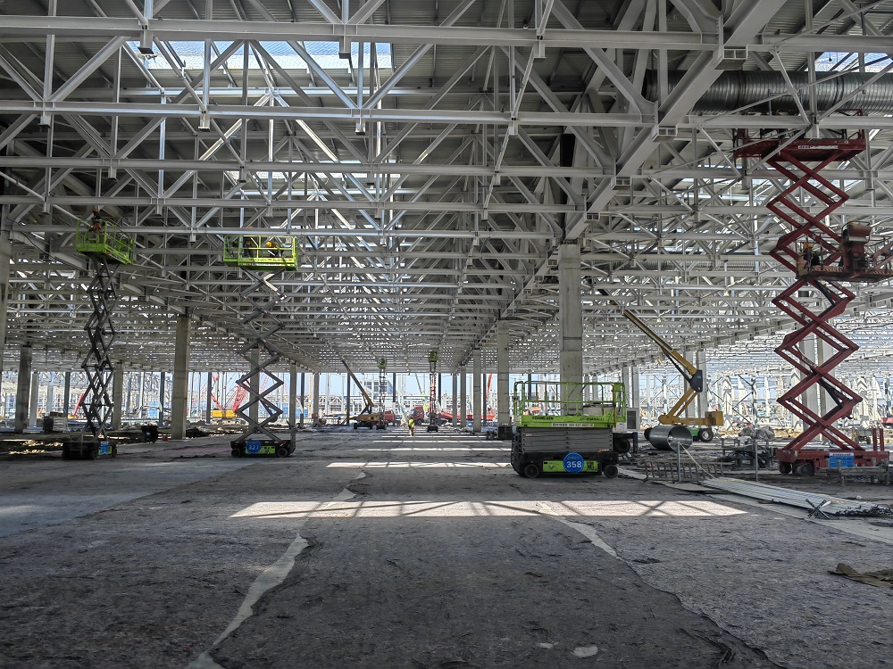 項目部全體管理人員緊抓施工節(jié)點,緊跟土建、鋼結(jié)構(gòu)單位施工進(jìn)度,全力統(tǒng)籌人、材、機(jī)合理高效入場,根據(jù)現(xiàn)場施工情況逐步優(yōu)化各專業(yè)施工方案,全力推進(jìn)施工進(jìn)度。目前,車間一整體防雷接地已完成60%,QA辦公樓預(yù)埋已完成90%,隨著土建單位工作面的交接,車間一5區(qū)、6區(qū)正在進(jìn)行成品支架、虹吸雨水管道、排水管、通風(fēng)管道等施工作業(yè)。