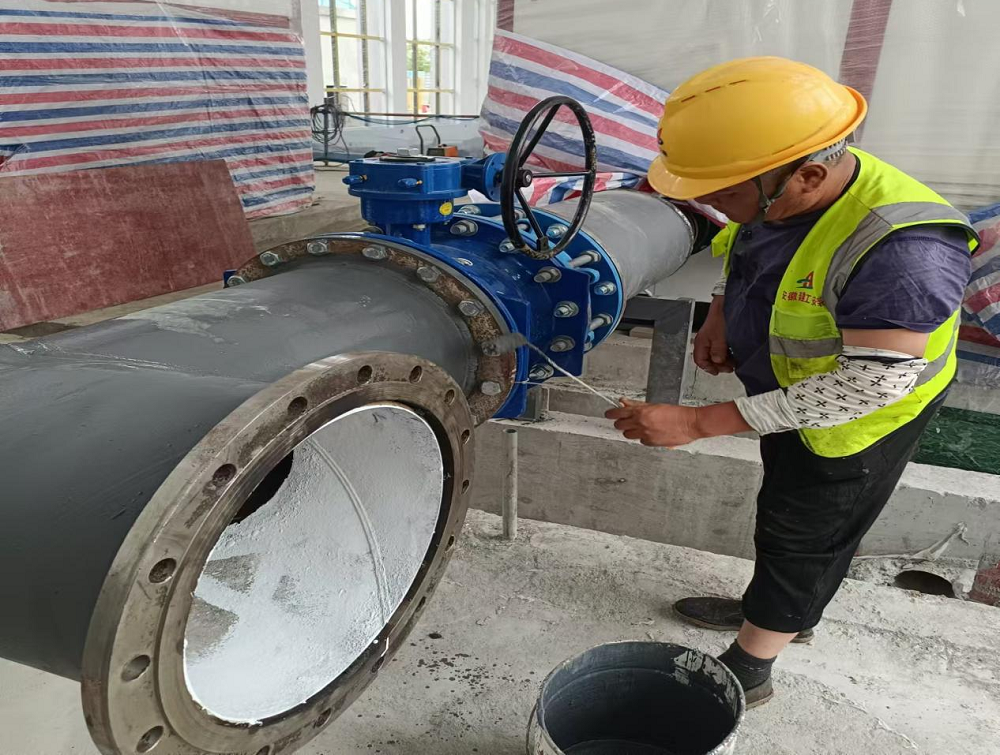 圖為管道刷防腐漆