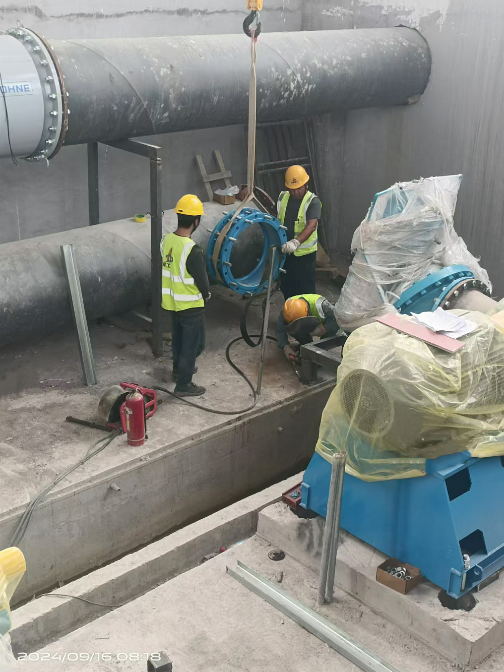 圖為安裝鼓風(fēng)機(jī)管道和閥門配件