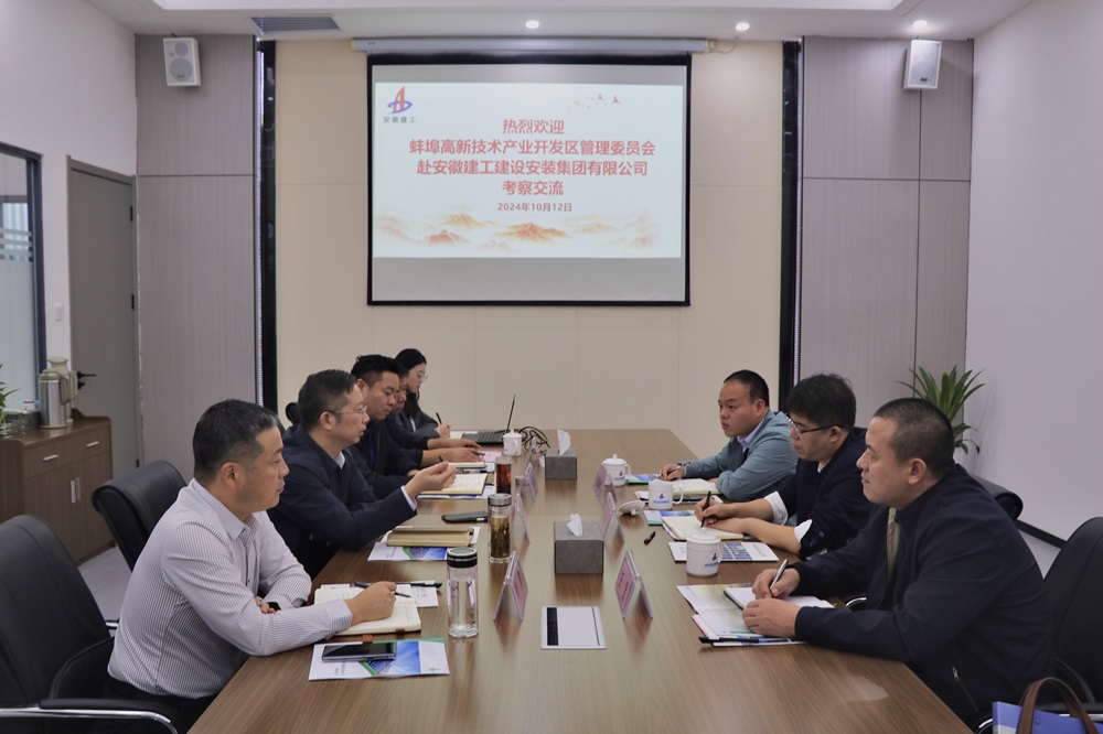 會(huì)上,朱珍宏重點(diǎn)介紹了安徽建工集團(tuán)三大戰(zhàn)略布局基本情況以及建工安裝集團(tuán)發(fā)展歷程、業(yè)務(wù)范圍、核心競(jìng)爭(zhēng)優(yōu)勢(shì)等;方浩亮分享了蚌埠高新區(qū)和自貿(mào)區(qū)在電子信息、高端制造和新材料新能源等領(lǐng)域所取得的成就與獨(dú)特技術(shù)優(yōu)勢(shì)。雙方重點(diǎn)圍繞產(chǎn)業(yè)投資、園區(qū)建設(shè)、技術(shù)創(chuàng)新、光伏儲(chǔ)能方面充分交換意見(jiàn),為下一步合作打下堅(jiān)實(shí)的基礎(chǔ)。