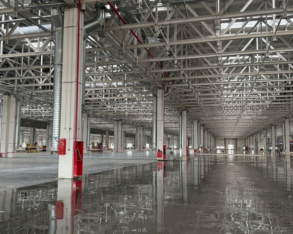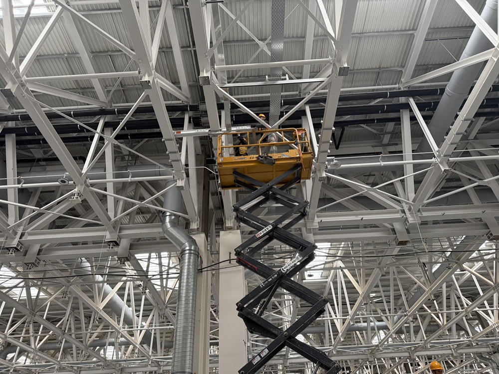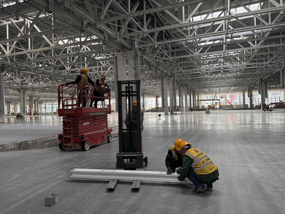 截至目前,焊裝車間燈具、車間一東側(cè)630毫米循環(huán)水不銹鋼管已全部安裝完成。本周完成消防箱安裝150套,母線安裝700米,屋頂風(fēng)機(jī)設(shè)備吊裝到位,如期完成節(jié)點目標(biāo)。與此同時,工藝廠家已進(jìn)場同步施工。
