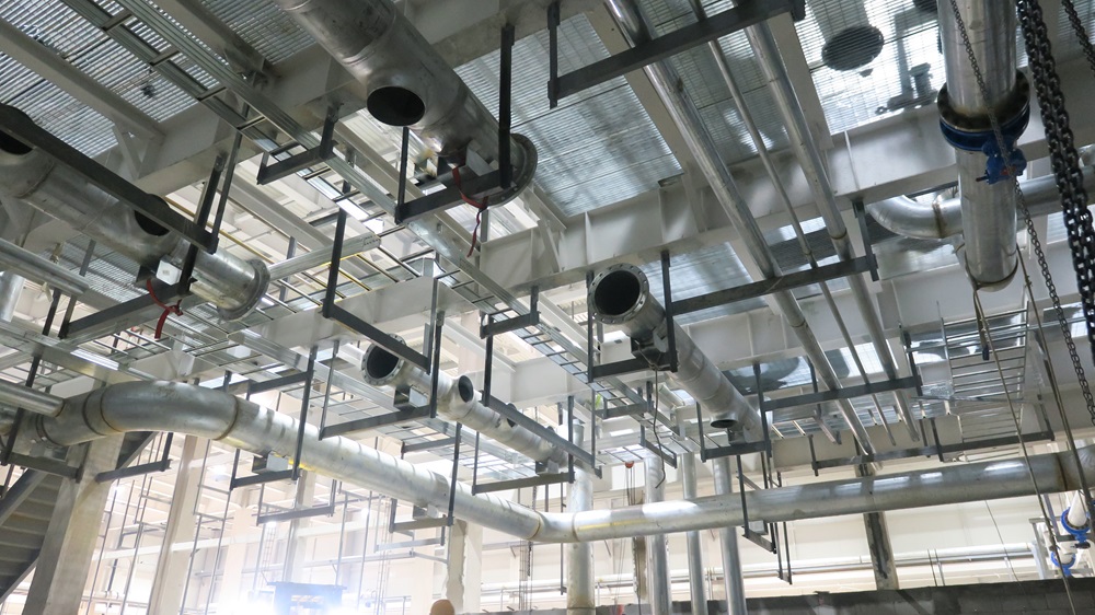 截至目前,焊裝車(chē)間空調(diào)水系統(tǒng)、給水系統(tǒng)、消防水系統(tǒng)已全部完成系統(tǒng)試壓工作。焊裝車(chē)間屋頂風(fēng)機(jī)、風(fēng)機(jī)控制電纜、動(dòng)力電纜也已全部安裝完成。與此同時(shí)本項(xiàng)目的能源中心正在有條不紊的推進(jìn),冷水機(jī)組、冷卻塔、水泵等大型設(shè)備陸續(xù)到場(chǎng)。