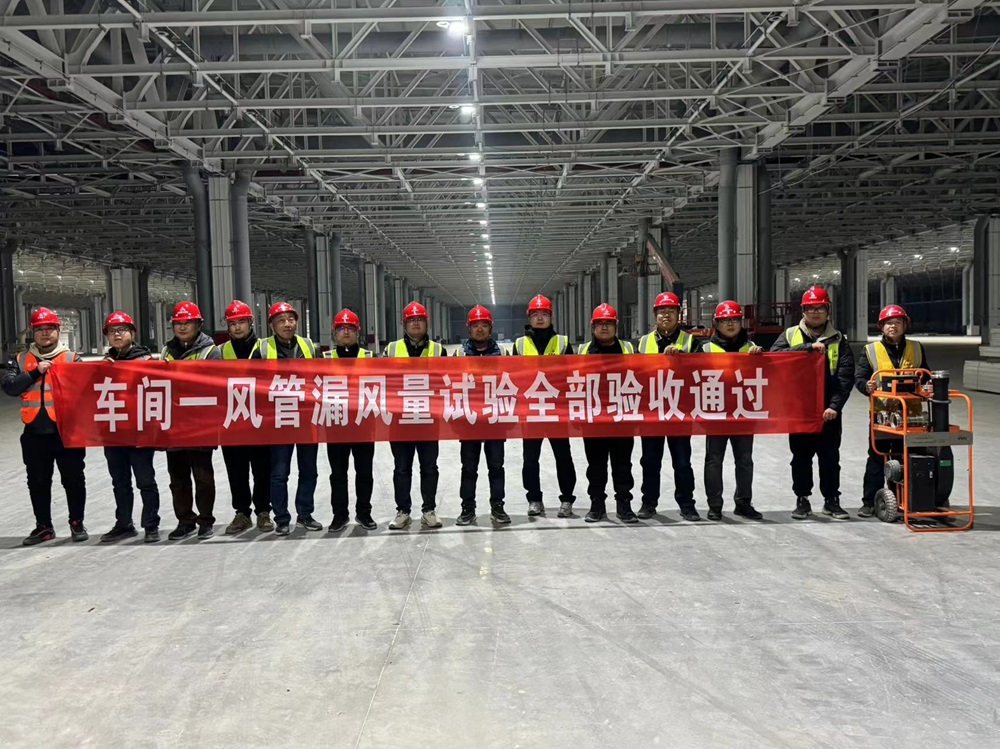 本周,車間一的風(fēng)管漏風(fēng)量試驗(yàn)全部驗(yàn)收合格,試驗(yàn)達(dá)標(biāo)率達(dá)100%。目前,廠房車間一焊裝車間的水電風(fēng)系統(tǒng)試壓試驗(yàn)與漏風(fēng)試驗(yàn)全部結(jié)束。焊裝車間內(nèi)水管保溫工作以及風(fēng)管保溫工作正在同步開展,且已進(jìn)入收尾階段。QA樓一層水電風(fēng)施工已完成90%,即將移交給裝飾單位進(jìn)場施工。車間一屋頂閣樓空調(diào)水管已完成50%,電力橋架已完成60%,重力流雨水管已完成100%。與此同時(shí),沖壓車間已完成頂部主風(fēng)管和虹吸管道的安裝工作,管道也在同步預(yù)制。