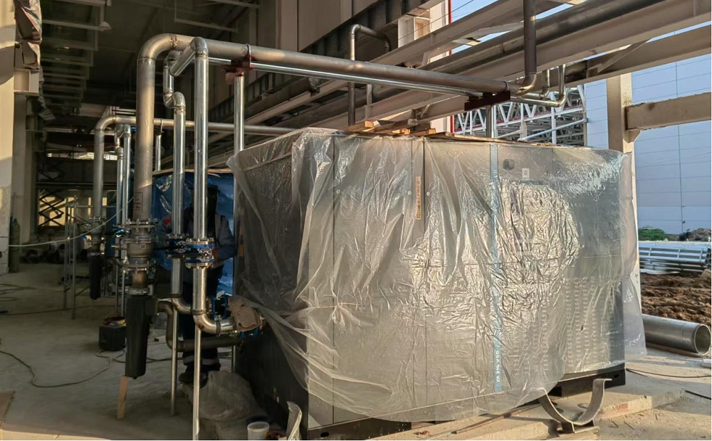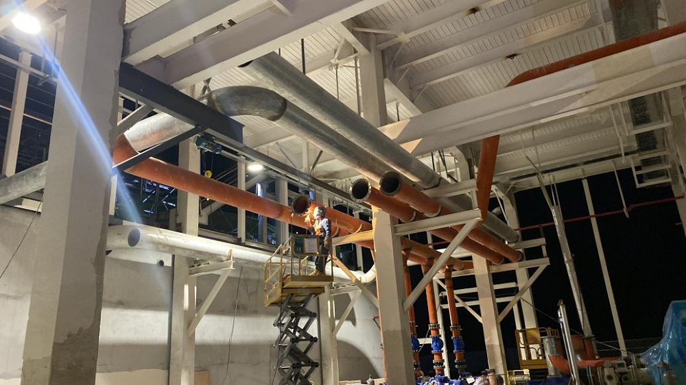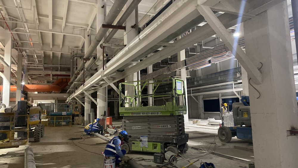 站房一(能源中心)作為整個廠區(qū)的“發(fā)動機”,建筑面積雖僅有11000平方米,但單體機電安裝造價約8000萬元,施工內容涵蓋空壓站、污水處理站、高效制冷機房、消防泵房及給水加壓站房等全廠幾乎所有核心“部件”。面對施工工藝復雜、工期緊、標準高且施工過程中設計變更頻繁、設備供貨周期長、資金不到位等多種不利因素,項目部積極想辦法克服困難,采取主動對接各方資源,深化設計確認、督促設備批量排產、加快技術交底完成、倒排施工計劃等一系列有效措施,堅持“搶進度、抓質量、保安全”核心思想不動搖,加班加點推進項目建設。截至目前,站房一(能源中心)形象進度已完成55%以上,實現(xiàn)產能過半,為確保關鍵合同節(jié)點“2025年2月28日公用動力系統(tǒng)調試完成,并具備各生產條件”打下堅實基礎。