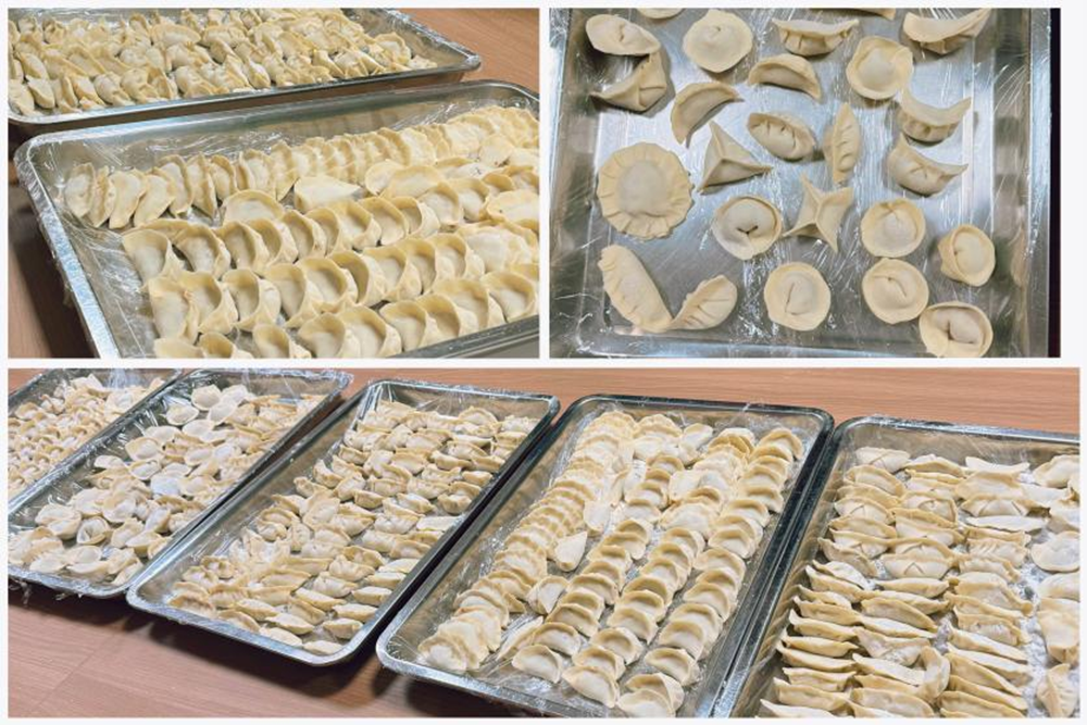 在分公司機關(guān),會議室的長桌上擺滿了各種食材和工具,有新鮮的餃子皮、美味的餡料、筷子、勺等。大家配合默契,歡聲笑語不斷,新手們在有經(jīng)驗的同事指導(dǎo)下,逐漸掌握了包餃子的技巧,雖然動作還有些生疏,但熱情絲毫不減。不一會兒,一個個形態(tài)飽滿的餃子就擺滿了托盤,有傳統(tǒng)的月牙形餃子,也有創(chuàng)意十足的花朵形、元寶形餃子。