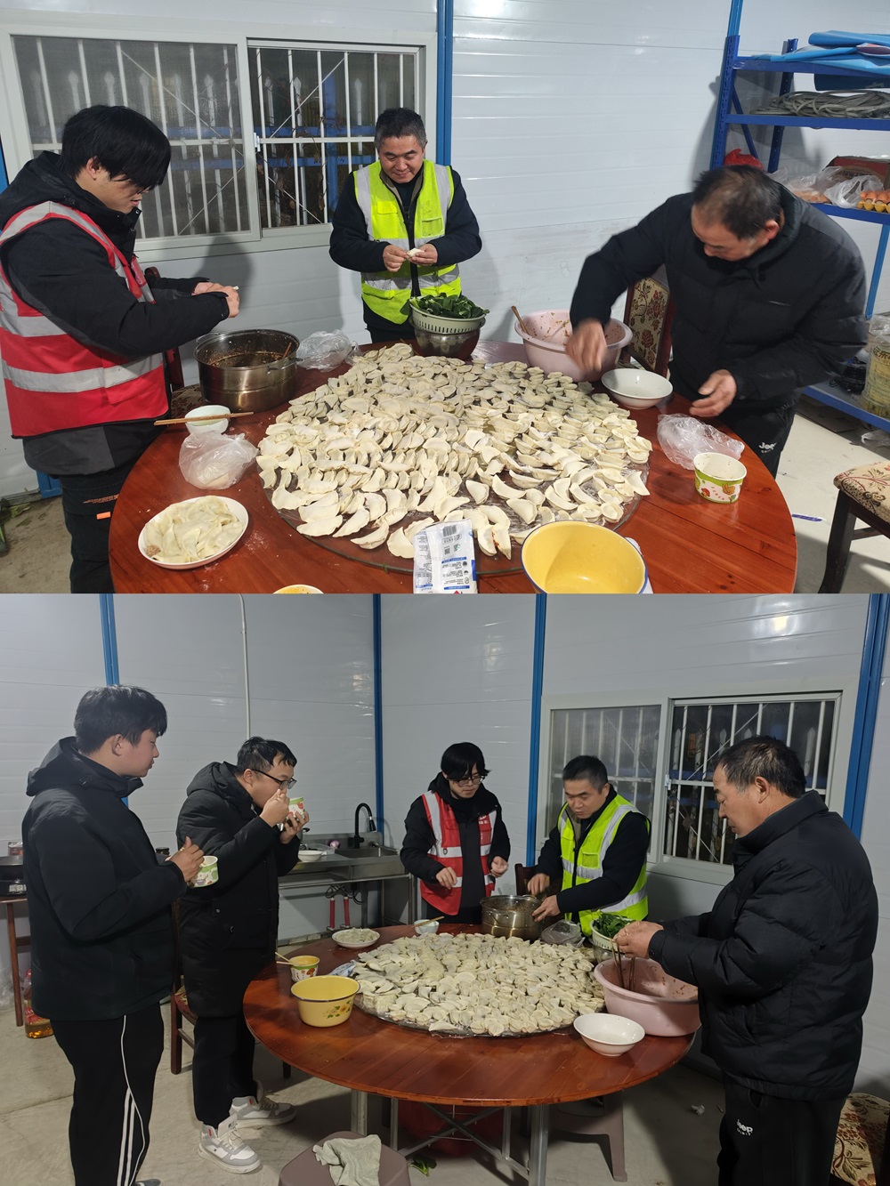 在新橋智能制造產(chǎn)業(yè)園一階段一標(biāo)項目機電安裝工程項目部,一場同樣歡樂的包餃子活動也在如火如荼地進(jìn)行著。項目部的員工們齊聚一堂,大家分工合作,有的負(fù)責(zé)調(diào)餡,確保餡料的口味恰到好處;有的負(fù)責(zé)擺放餃子,將包好的餃子整齊地排列在托盤上。雖然大家都很忙碌,但空氣中洋溢著歡聲笑語。大家一邊包餃子,一邊交流著項目上的工作進(jìn)展和生活趣事,氛圍融洽和諧。