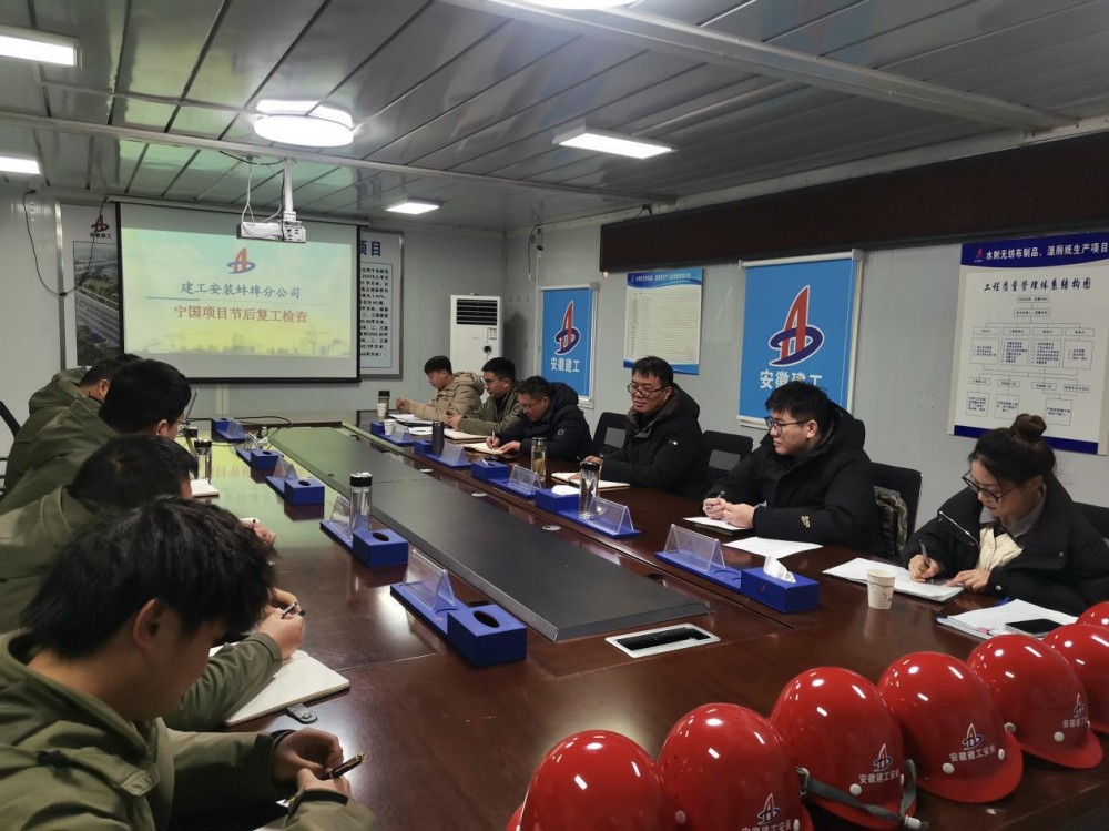 2025年2月11日,分公司黨支部書記、經(jīng)理趙銘亮一行赴寧國水刺無紡布制品、濕廁紙生產(chǎn)項目開展春節(jié)后復(fù)工檢查,并召開現(xiàn)場工作會議,對項目工期進度、質(zhì)量管控、成本管控、人才培養(yǎng)等方面進行安排部署,為項目新一年建設(shè)開好局、起好步指明方向。分公司副經(jīng)理張斌及各部門負責人陪同檢查。