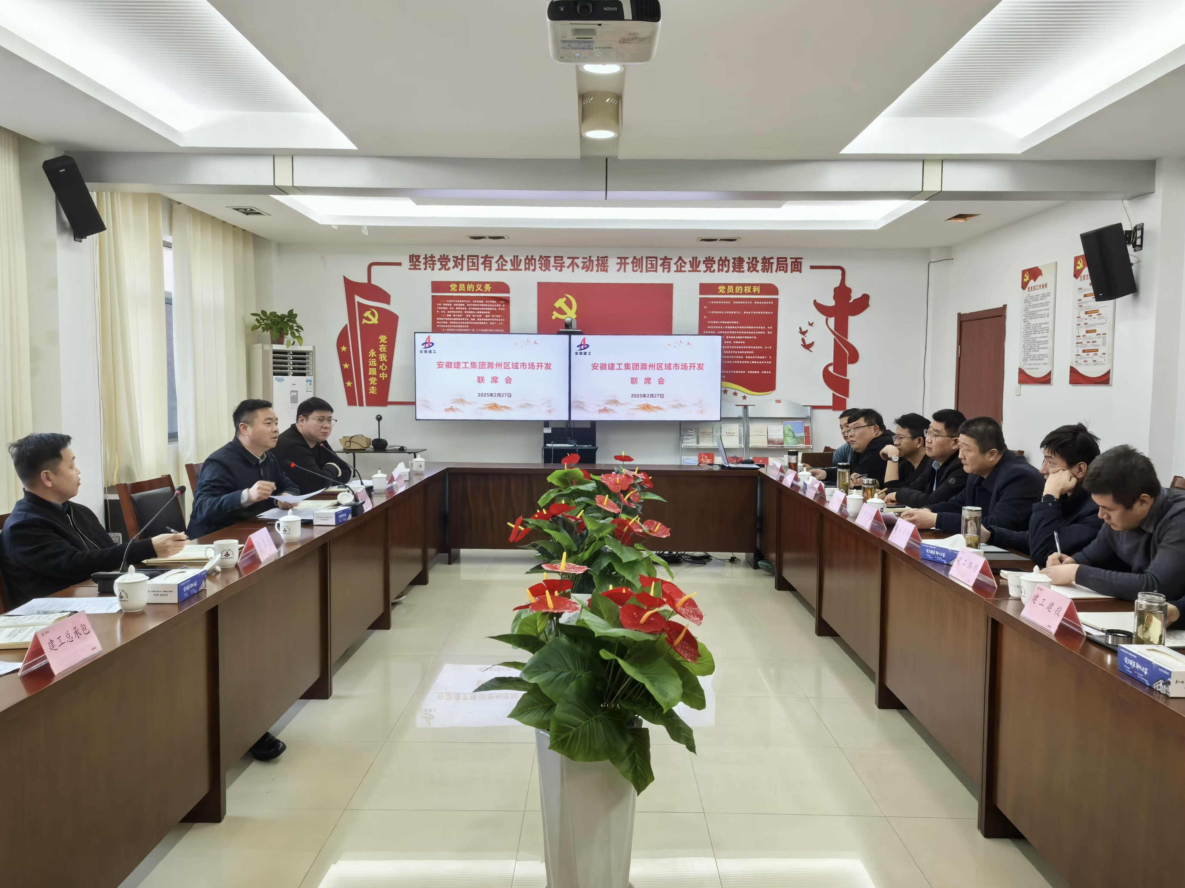 2月27日下午,安徽建工集團(tuán)滁州片區(qū)2025年第一次市場(chǎng)開發(fā)工作機(jī)制協(xié)調(diào)會(huì)在建工總承包皖東建投4樓會(huì)議室召開。建工安裝黨委委員、副總經(jīng)理劉曉剛,黨委委員、副總經(jīng)理徐華磊,集團(tuán)在滁各單位主要負(fù)責(zé)人及市場(chǎng)開發(fā)相關(guān)人員參加會(huì)議,會(huì)議由建工安裝市場(chǎng)開發(fā)和投資部經(jīng)理許杰主持。