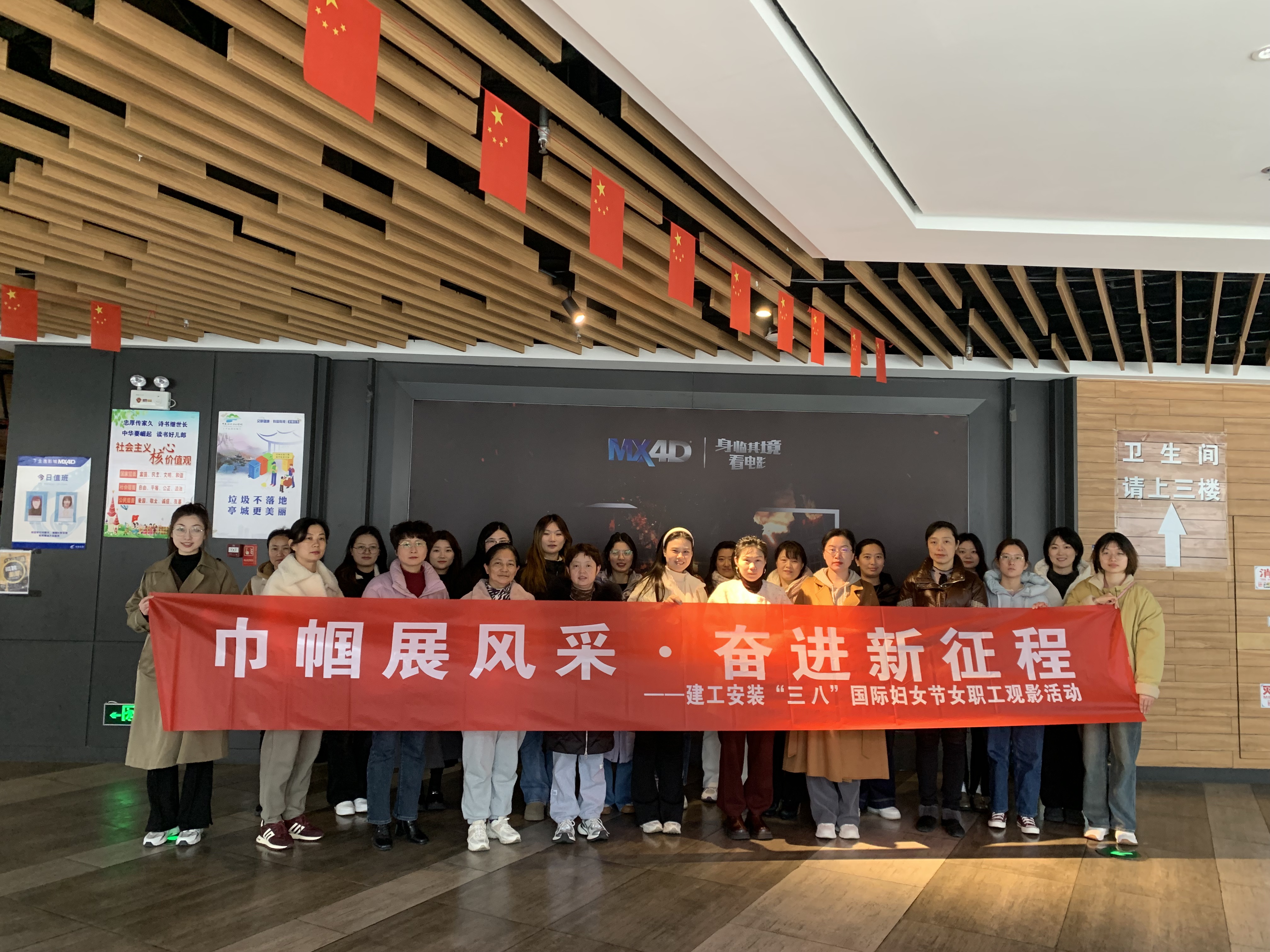 為豐富職工的業(yè)余文化生活,進(jìn)一步關(guān)心關(guān)愛(ài)女職工,增強(qiáng)新時(shí)代女性?shī)^發(fā)向上的凝聚力和向心力,在第115個(gè)國(guó)際勞動(dòng)?jì)D女節(jié)來(lái)臨之際,3月7日下午,建工安裝集團(tuán)工會(huì)組織女職工開(kāi)展“巾幗展風(fēng)采·奮進(jìn)新征程”觀影活動(dòng)。