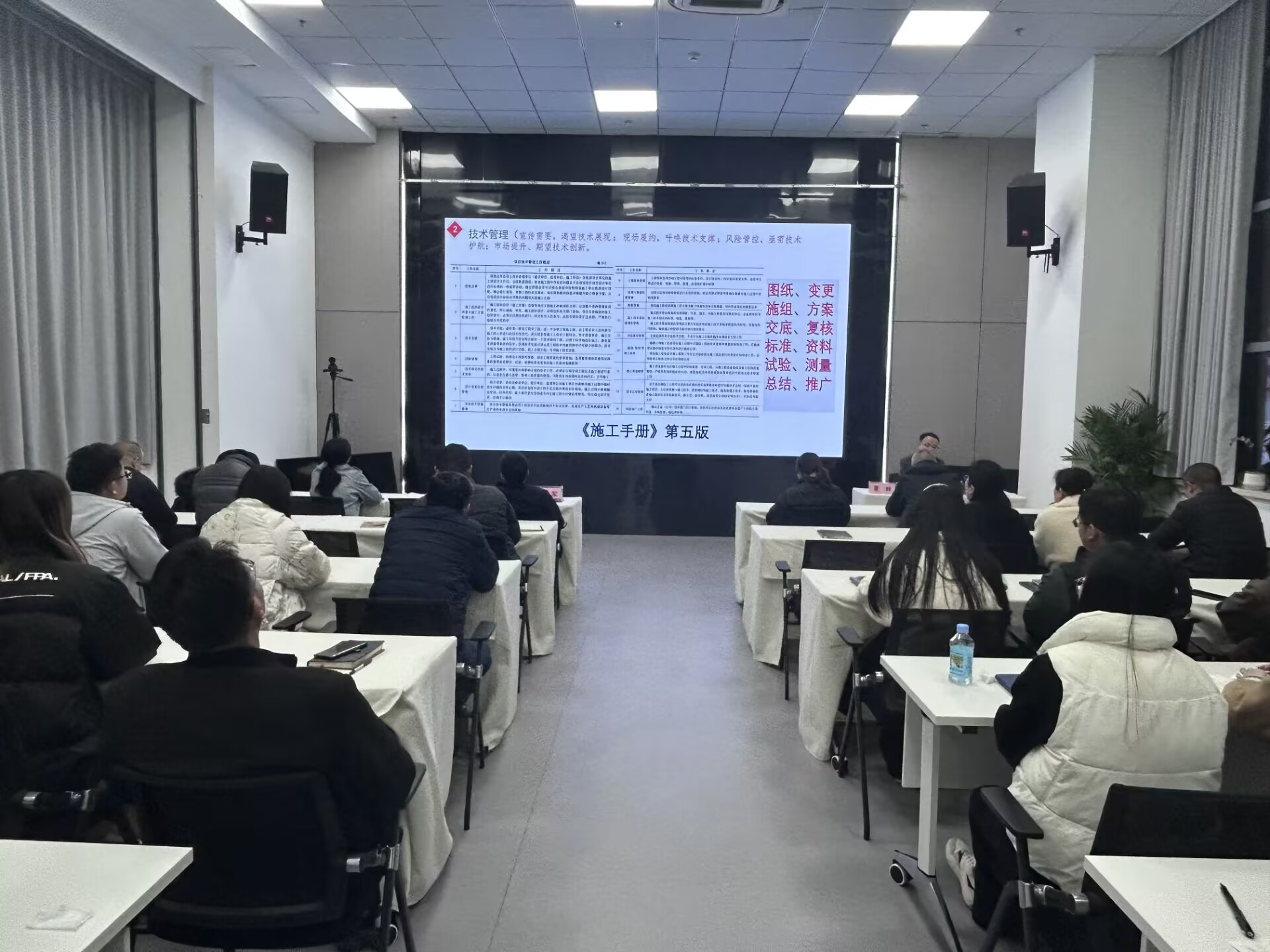夏輝以中央發(fā)布的《一張思維導(dǎo)圖帶大家看2025年政府工作十大任務(wù)》的切入點(diǎn),強(qiáng)調(diào)了高質(zhì)量發(fā)展和創(chuàng)新驅(qū)動(dòng)的重要性。隨后他從技術(shù)管理、機(jī)電工程體系、機(jī)電工程安裝工藝細(xì)部節(jié)點(diǎn)做法優(yōu)選、AI應(yīng)用等方面對機(jī)電工程基礎(chǔ)知識進(jìn)行了細(xì)致解讀,講解了技術(shù)在企業(yè)運(yùn)營中的核心作用。就《聚焦機(jī)電主責(zé)主業(yè) 走“專精特強(qiáng)”之路行動(dòng)方案》(第一版)與參培人員進(jìn)行深入交流。