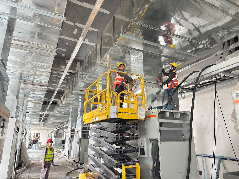 青海高原,氣候惡劣,環(huán)境艱苦,高寒缺氧,但這些困難并沒有阻擋項目部全體成員奮斗的步伐。施工現(xiàn)場,機器轟鳴聲此起彼伏,工人們頭戴安全帽,身系安全繩,操作著各種設(shè)備,熟練地進行著防水卷材敷設(shè)、吊頂板安裝、鋼筋綁扎、外墻抹灰、風(fēng)管安裝等作業(yè),每個環(huán)節(jié)都緊張有序,環(huán)環(huán)相扣。項目管理人員穿梭在各個施工點,緊盯現(xiàn)場安全與質(zhì)量,及時協(xié)調(diào)解決施工中遇到的問題,他們?nèi)硇牡赝度氲焦ぷ髦?,用專業(yè)的素養(yǎng)和嚴(yán)謹(jǐn)?shù)膽B(tài)度為項目建設(shè)保駕護航。