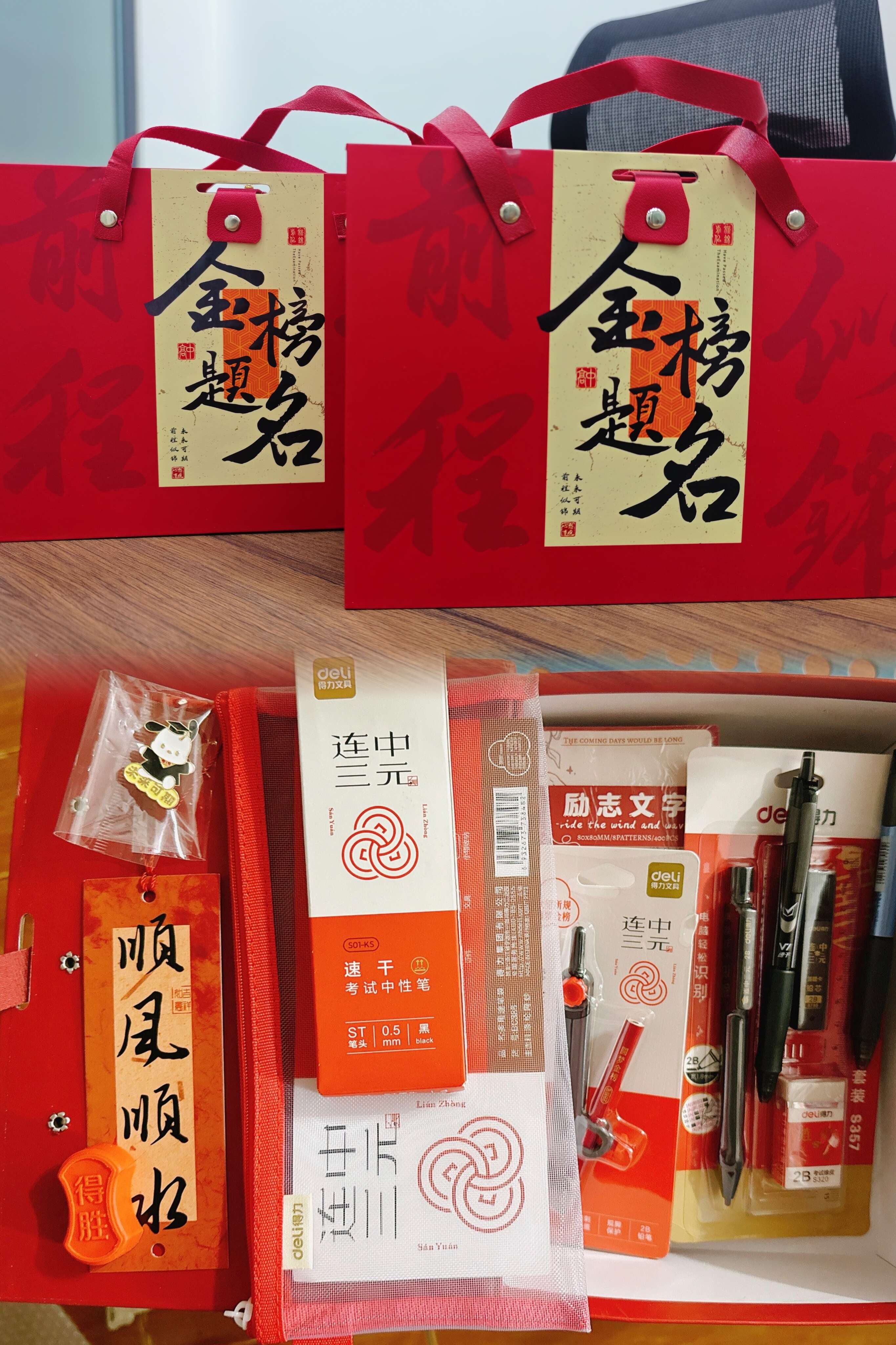 此次發(fā)放的大禮包內(nèi)容豐富且極具意義。其中,文具套裝包含了高品質(zhì)的簽字筆、涂卡筆、尺子等考試必備文具,助力學(xué)子們?cè)诳紙?chǎng)上發(fā)揮出最佳水平;祝福語書簽上,書寫著“旗開得勝”“未來可期”等充滿鼓勵(lì)與期許的話語,寄托著公司對(duì)考生們的美好祝愿。