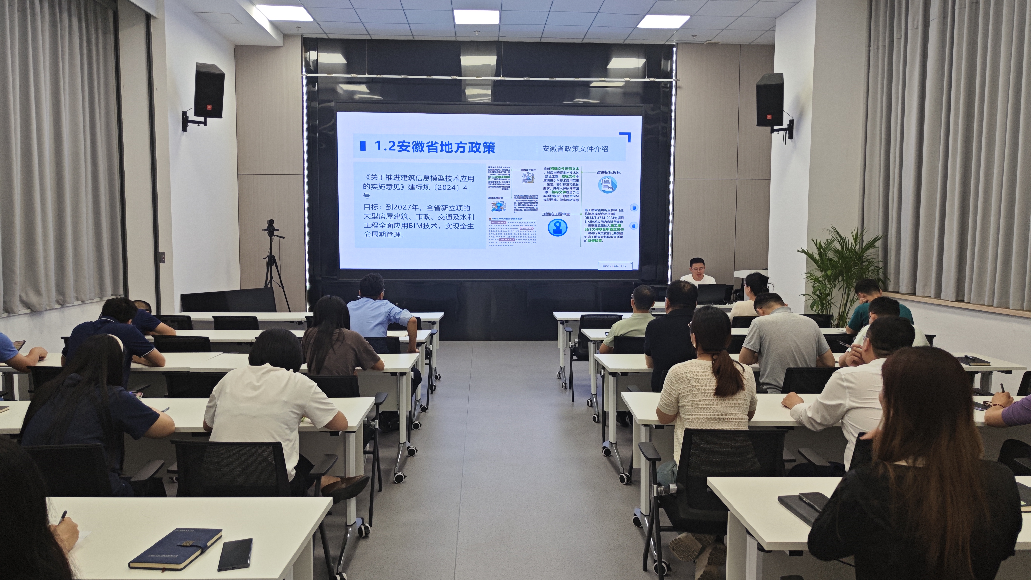 主講人圍繞BIM技術(shù)展開(kāi)系統(tǒng)講解。梳理國(guó)家及安徽省BIM政策要點(diǎn),深度闡釋BIM技術(shù)概念與原理,著重解析其應(yīng)用價(jià)值與優(yōu)勢(shì)。隨后詳細(xì)說(shuō)明BIM工作流程以及核心技術(shù)應(yīng)用點(diǎn),并借助三個(gè)視頻短片直觀呈現(xiàn)實(shí)際應(yīng)用場(chǎng)景,助力參訓(xùn)人員深化對(duì)BIM技術(shù)的理解。