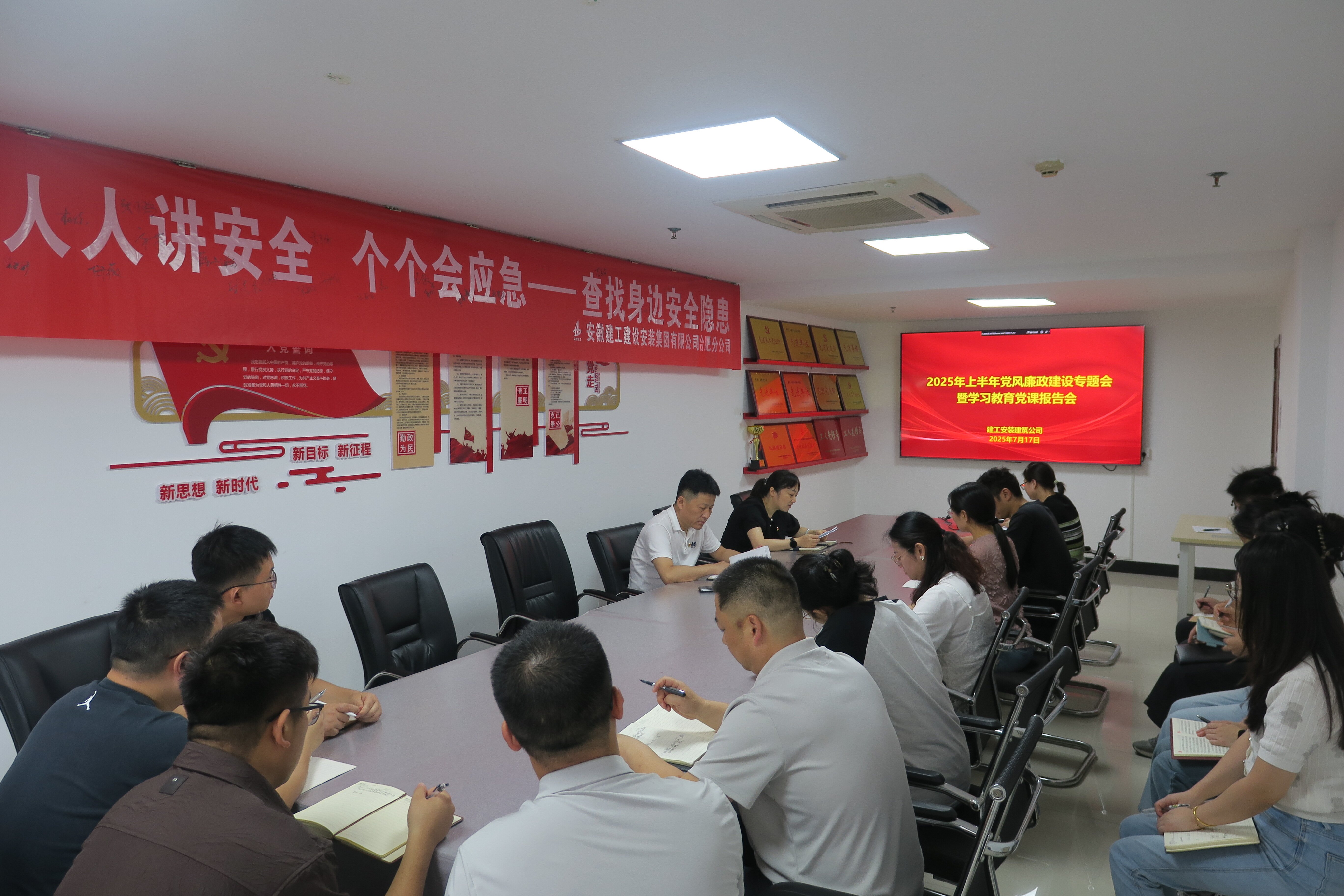 7月17日上午,建工安裝建筑公司召開2025年上半年黨風(fēng)廉政建設(shè)專題會暨學(xué)習(xí)教育黨課報告會,建筑公司領(lǐng)導(dǎo)班子、部門負(fù)責(zé)人、各項(xiàng)目主要負(fù)責(zé)人、支部黨員參加會議。